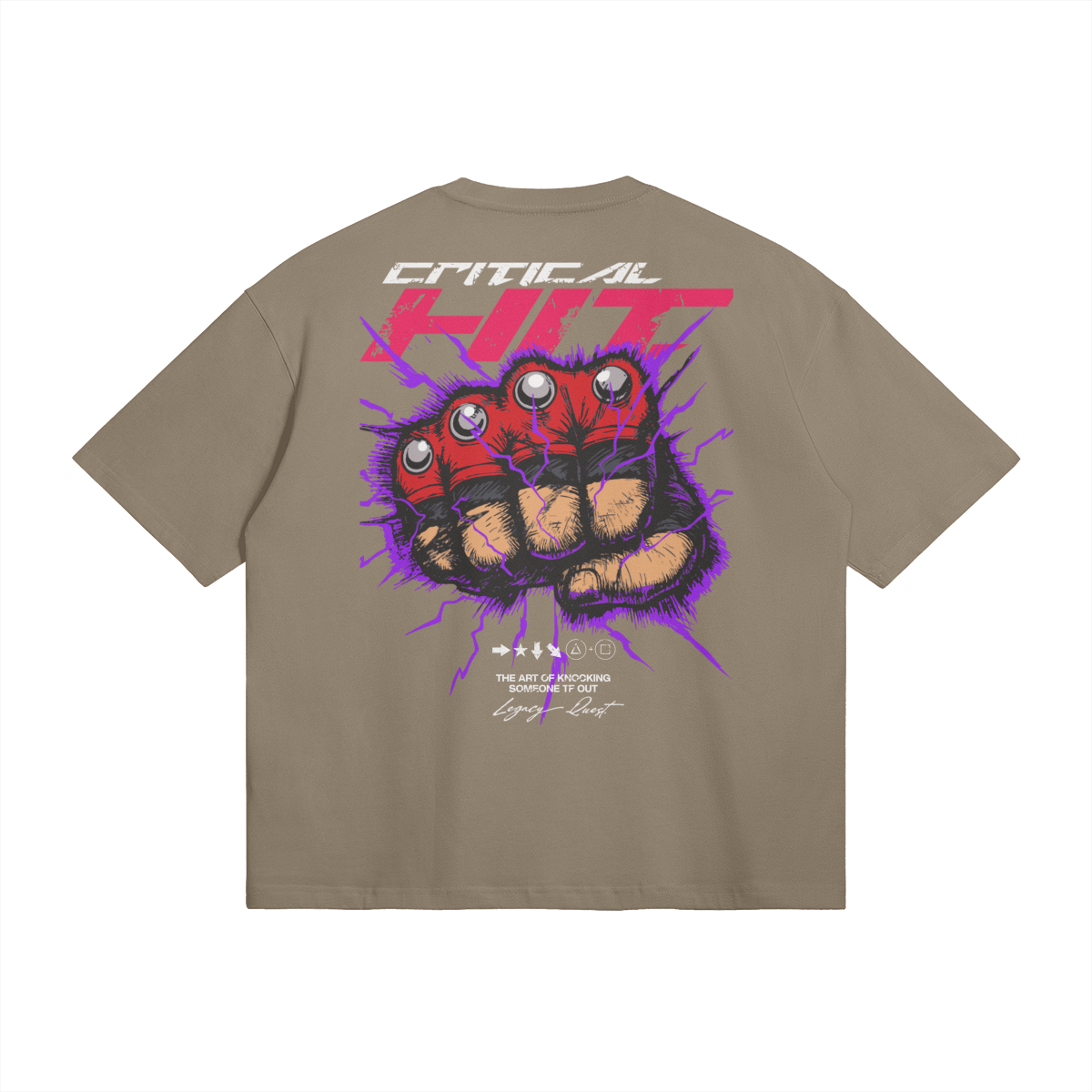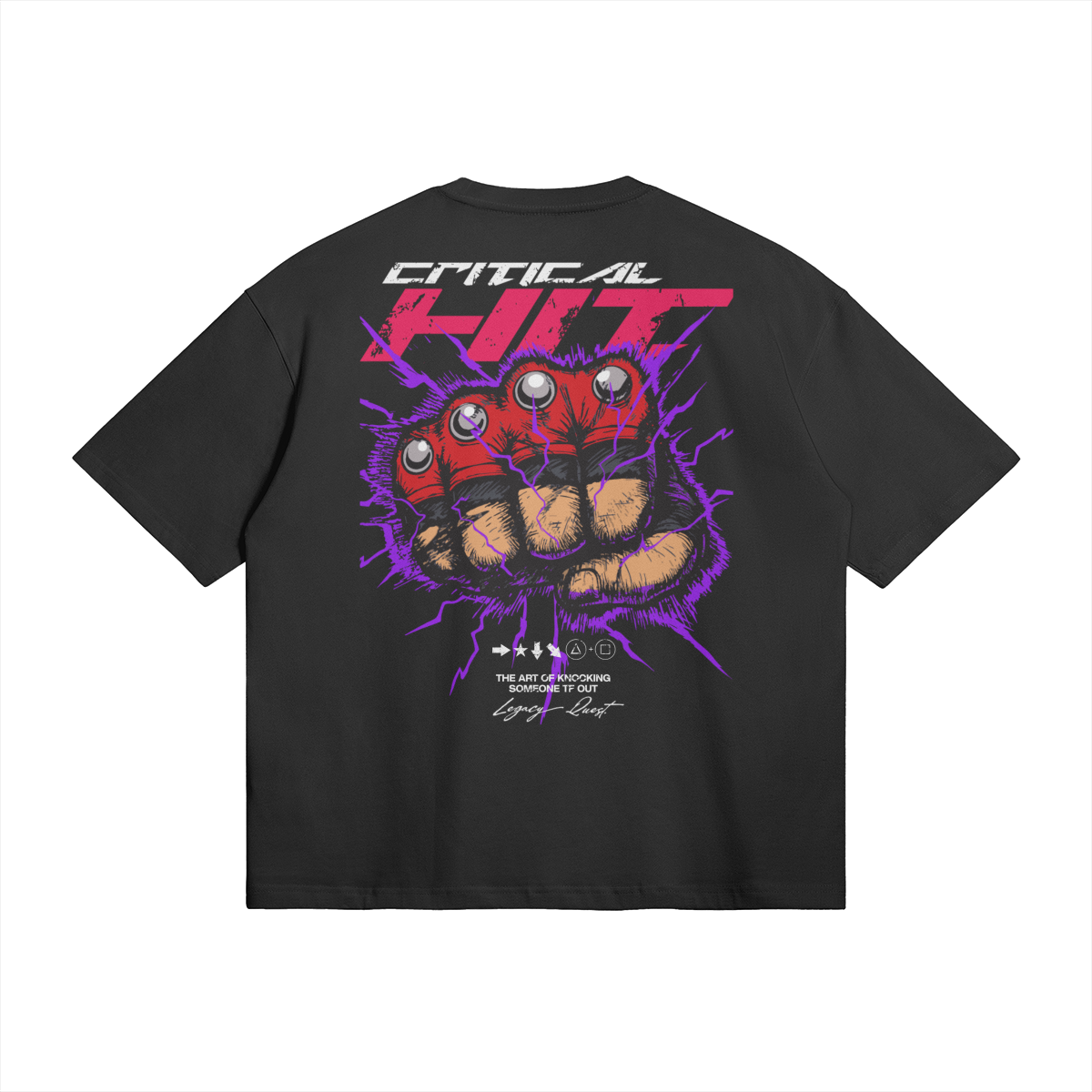 The Critical Hit Tee is inspired by the raw force of a perfectly timed heavy blow — the kind that cracks through defenses and leaves everything stunned.